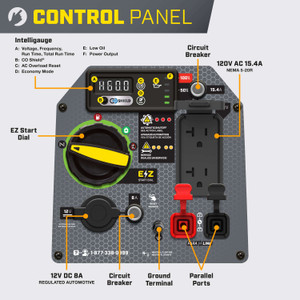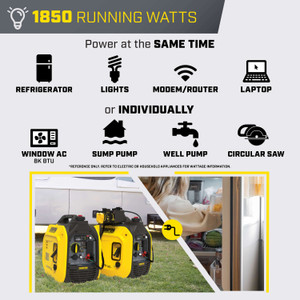 1850 Watts 2500 Starting Watts 53dBA 25-Hour Run Time 43.2 Pounds CO Shield