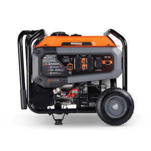 The Generac GP5500 Generator features electric start making it fast and easy to use. The 5.4-gallon steel tank with built-in gauge provides a run time of up to 10.5 hours at 50% rated load. Placement is easy with the locking folding handles and 9.5-inch never-flat wheels. The control panel provides 120-Volt and 120/240-Volt receptacle options.