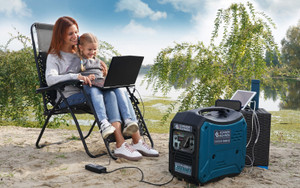 The KS 100i 79.7 cc 4-stroke engine runs on gasoline and produces up to 3.3 horsepower. The 2000 watt generator weighs less than 42 pounds. The 1.3-gallon tank provides up to 5 hours of run time at 50% Load.