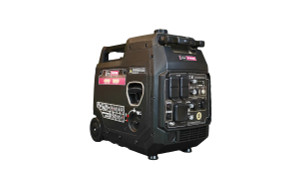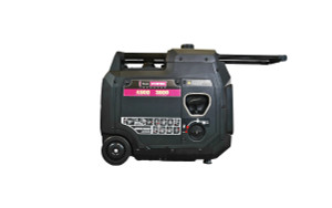 The Flex Power 4500 Watt Generator is an inverter generator with a variable speed engine to save fuel and reduce noise. With a telescoping handle and wheels for transport, the 76 pound 4500ies generator rolls to wherever you need it for easy placement. Electric start makes operation a breeze, with a recoil start cord for backup. A combination dial switch selects Stop–Off–Run–Choke for quick setup and starts.