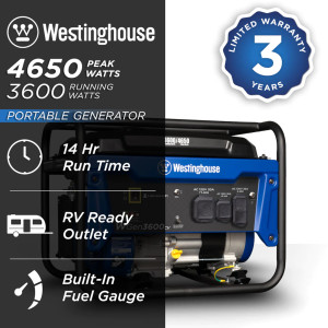 3-Year Warranty - All Westinghouse Portable Generators come with a 3-Year Residential Warranty and Lifetime Technical Support.