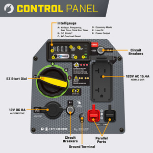 The Champion 2500 Watt inverter generator is one of the industry's quietest and lightest portable generators in its class. The 80cc generator engine provides up to 11.5 hours of run time. CO Shield detects dangerous levels of Carbon Monoxide and shuts down the generator. Use with a Champion Parallel Kit* and a second generator* to double your power.